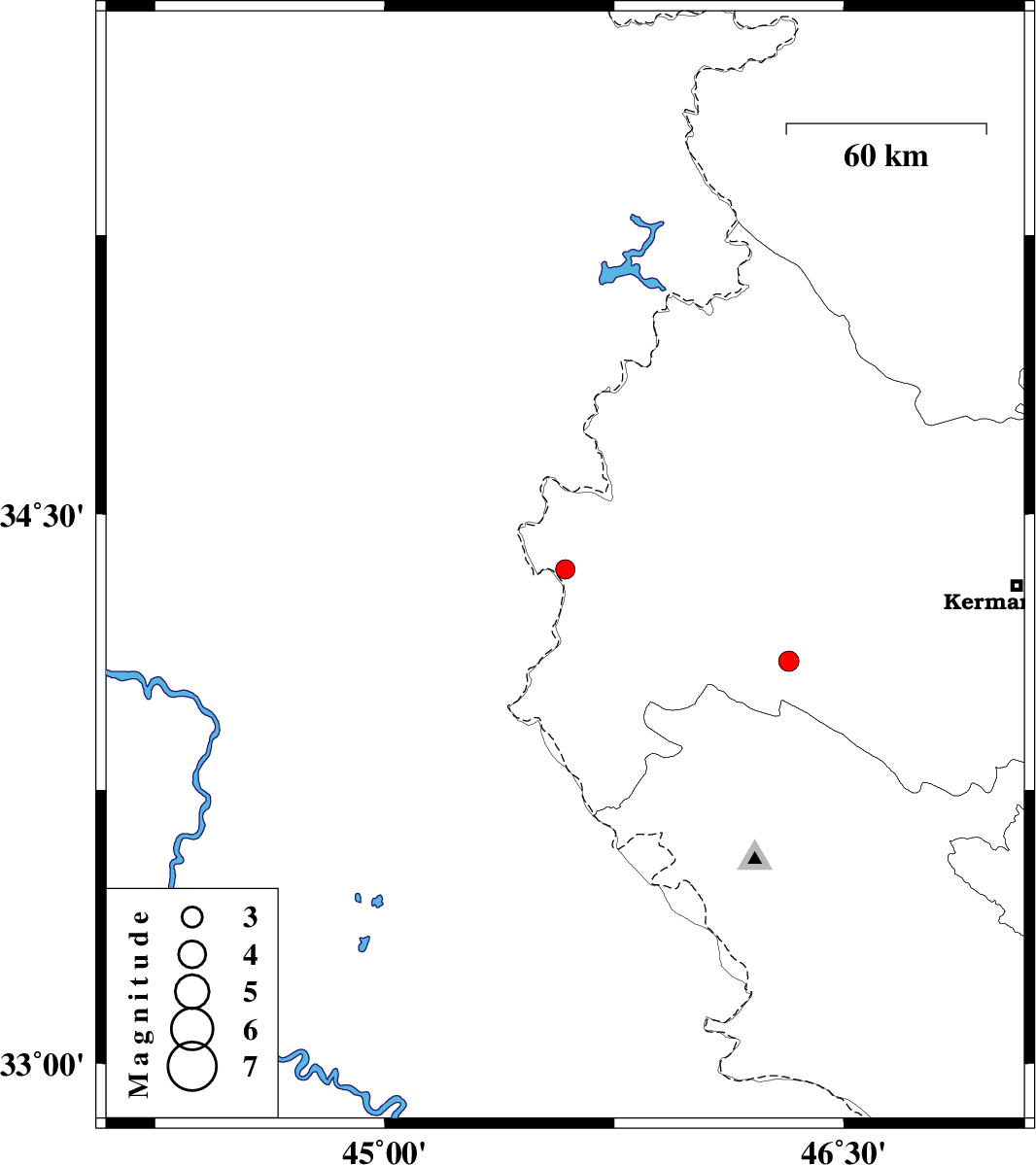 | 2014/01/21 | 04:56:25.1 | 08:26:25.1 | 34.1 | 46.32 | 14 | ML2.9 | Kermanshah Province, 31 km North of Eyvan |