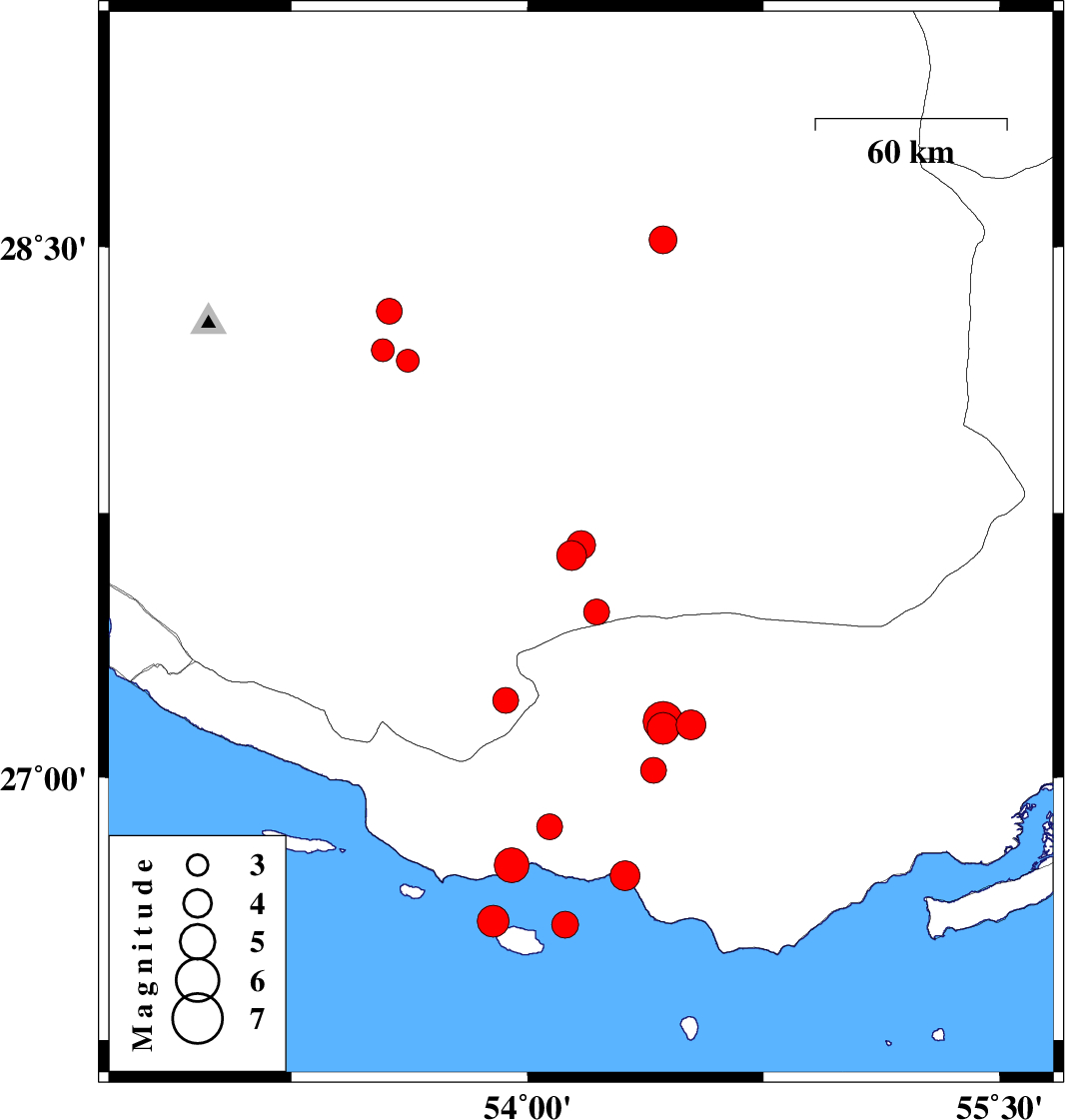| 2014/01/10 | 14:30:39.3 | 18:00:39.3 | 26.58 | 54.12 | 15 | ML3.8 | Persian Gulf, 73 km West of Bandar-e lengeh | ||