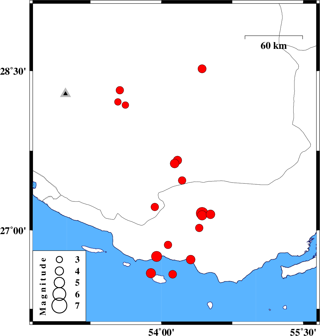| 2014/01/22 | 03:32:07.5 | 07:02:07.5 | 27.63 | 54.14 | 15 | ML4.2 | Fars Province, 21 km West of Lar | ||