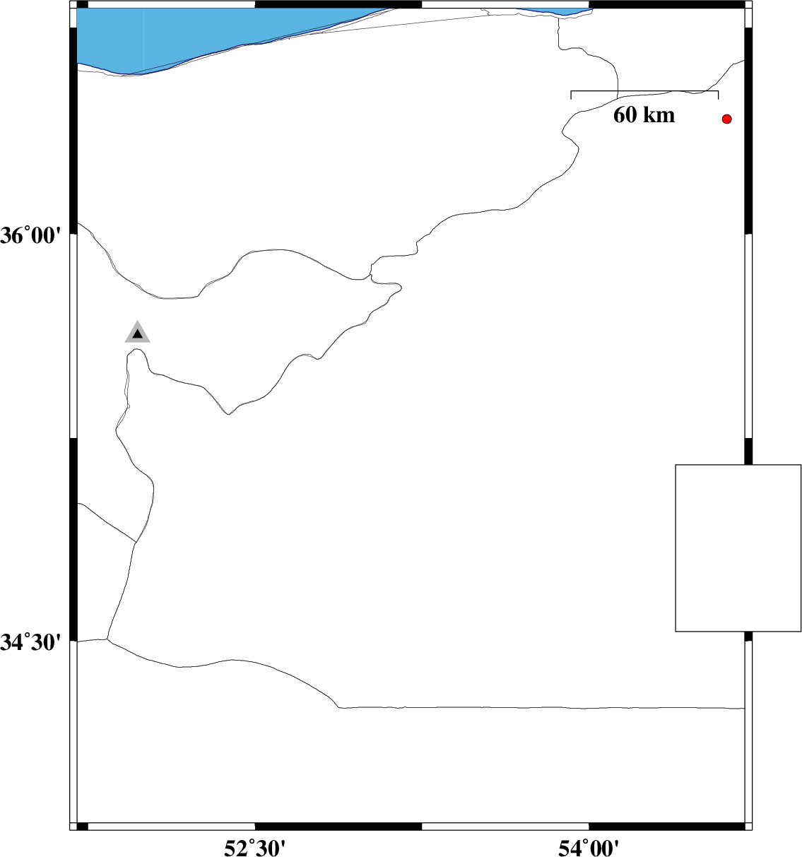 | 2014/01/06 | 01:37:24.1 | 05:07:24.1 | 35.25 | 52.05 | 38 | ML2.2 | Semnan Province, 26 km West of Garmsar | ||