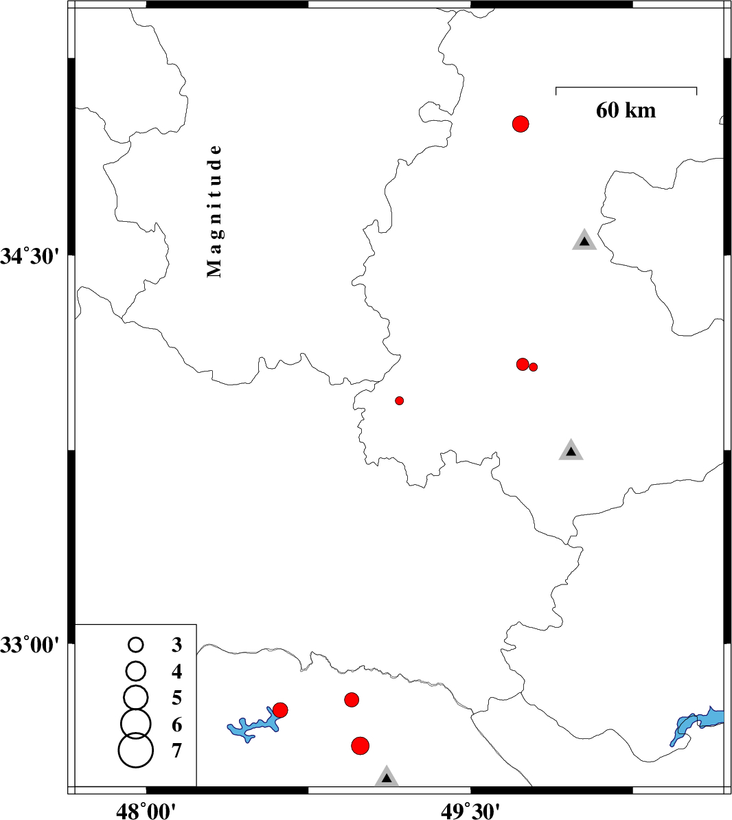 | 2014/01/19 | 11:26:34.9 | 14:56:34.9 | 34.07 | 49.79 | 15 | ML1.7 | Markazi Province, 10 km East of Arak | ||