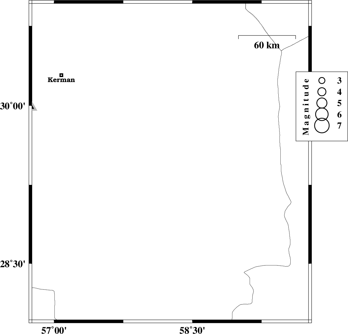 | 2014/01/24 | 17:11:36.5 | 20:41:36.5 | 29.46 | 58.26 | 37 | ML2.5 | Kerman Province, 40 km North of Bam |