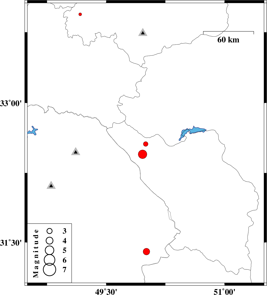 | 2014/01/26 | 22:57:33.6 | 02:27:33.6 | 31.4 | 50.01 | 16 | ML3.8 | Khoozestan Province, 17 km South-East of Bagh Malek | ||