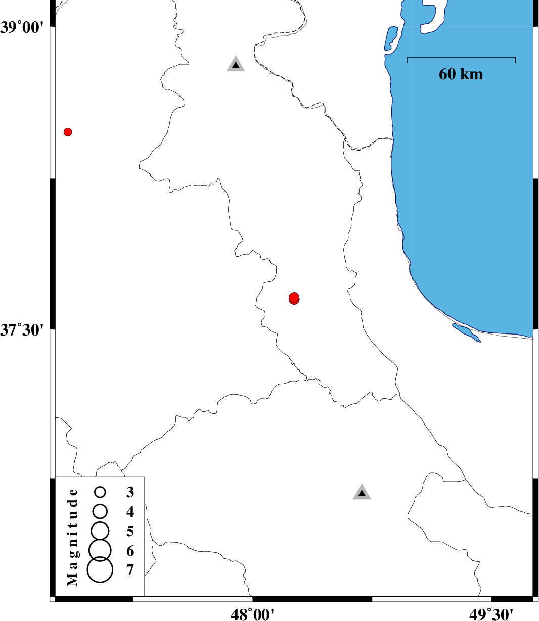 | 2014/01/30 | 13:36:50.5 | 17:06:50.5 | 37.66 | 48.26 | 14 | ML2.8 | Ardebil Province, 12 km West of Givi | ||
