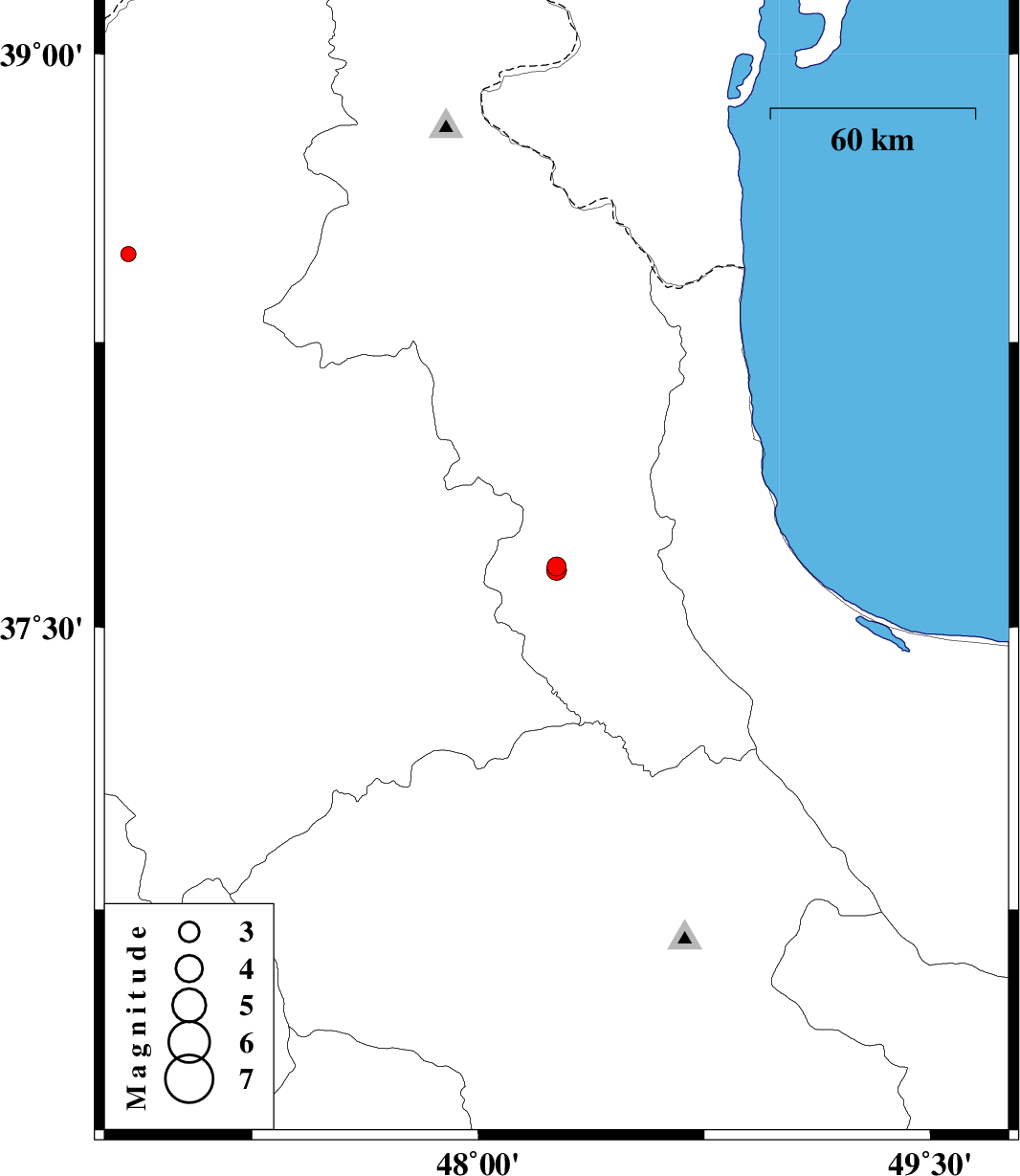 | 2014/01/30 | 13:36:50.5 | 17:06:50.5 | 37.66 | 48.26 | 14 | ML2.8 | Ardebil Province, 12 km West of Givi | ||