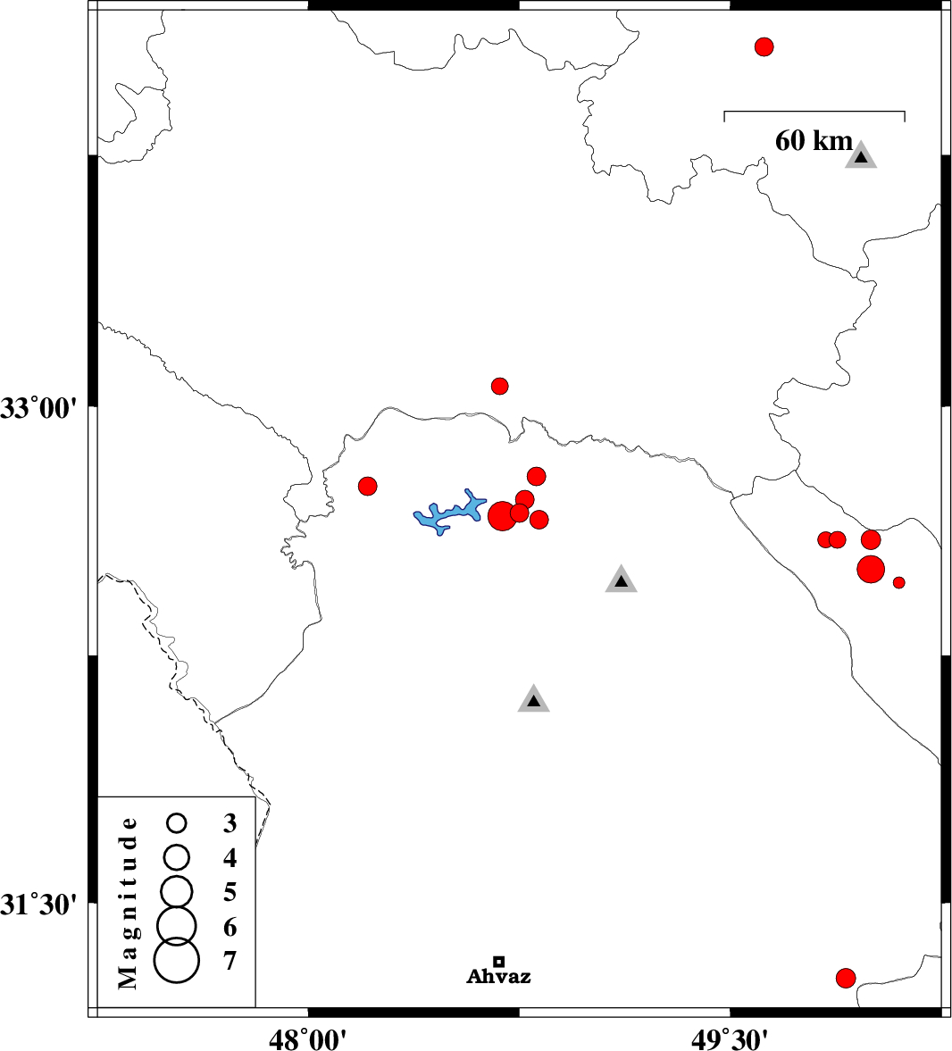 2014/02/07 | 04:43:18.9 | 08:13:18.9 | 32.67 | 48.69 | 14 | ML4.7 | Khoozestan Province, 39 km North-East of Andimeshk | ||