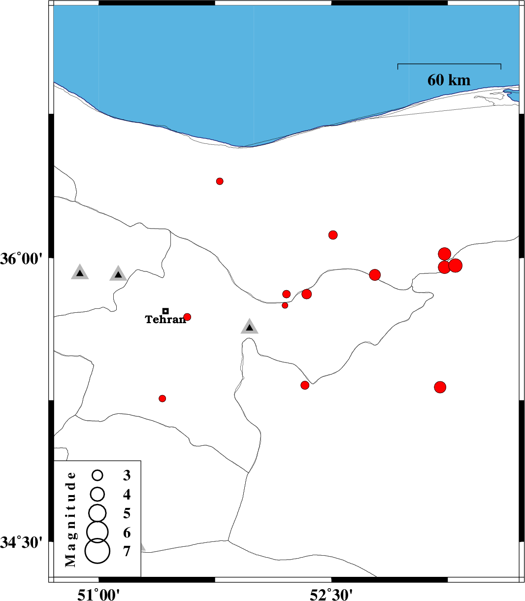 | 2014/01/18 | 10:09:22.4 | 13:39:22.4 | 35.95 | 53.23 | 14 | ML3.6 | Mazandaran Province, 24 km South-East of Pol-E-Sefid | ||
