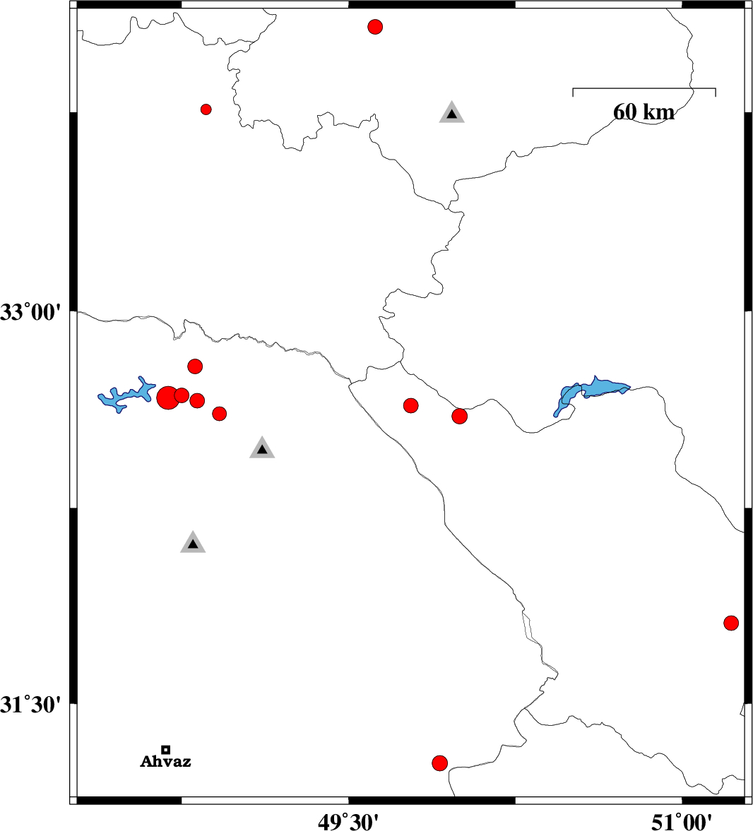 | 2014/02/07 | 04:51:31.2 | 08:21:31.2 | 32.68 | 48.75 | 14 | ML2.9 | Khoozestan Province, 45 km North-East of Andimeshk | ||