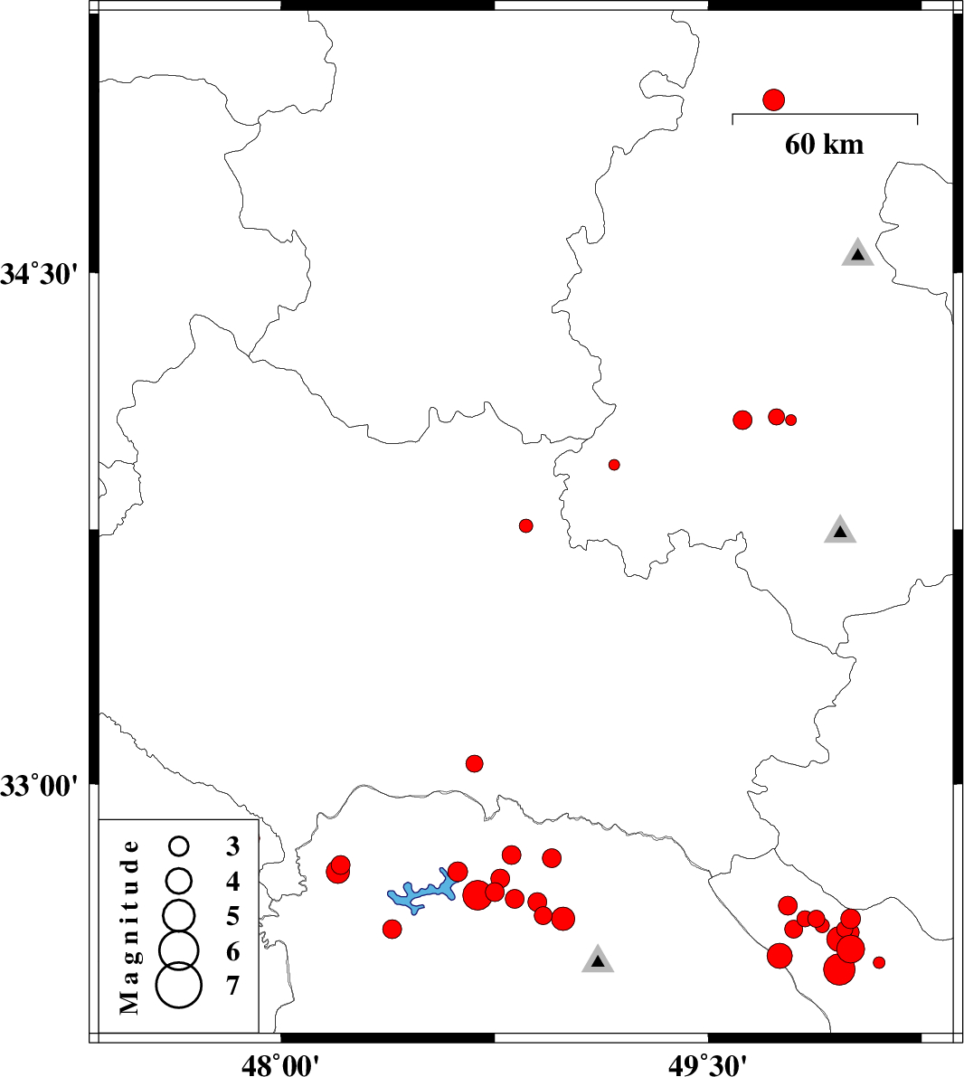 | 2014/01/31 | 13:24:05.3 | 16:54:05.3 | 33.06 | 48.68 | 45 | ML2.7 | Lorestan Province, 55 km South-East of Khorramabad | ||