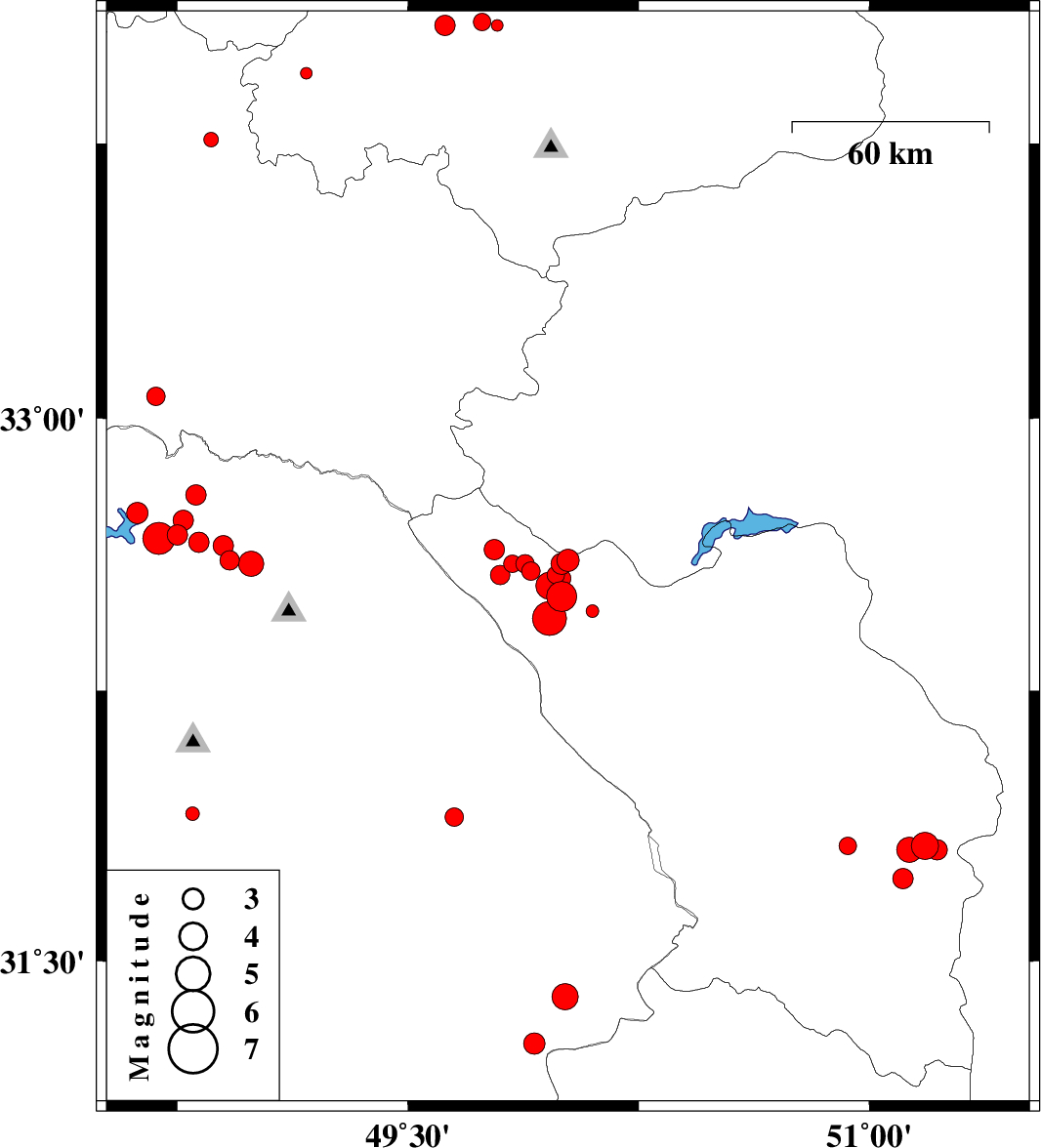 | 2014/01/31 | 13:24:05.3 | 16:54:05.3 | 33.06 | 48.68 | 45 | ML2.7 | Lorestan Province, 55 km South-East of Khorramabad | ||