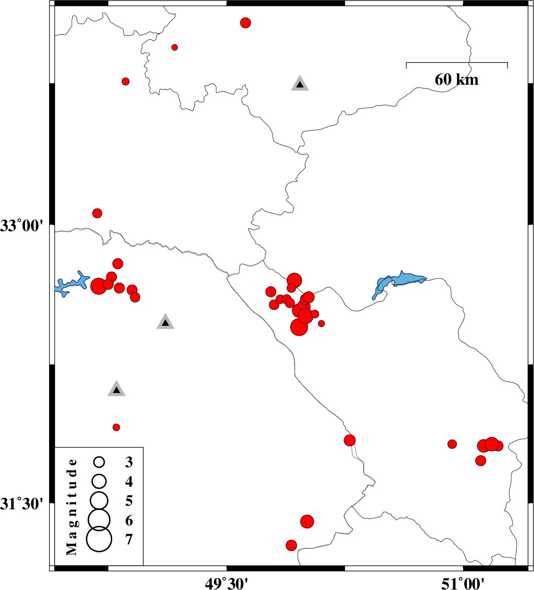 | 2014/02/17 | 13:34:01.5 | 17:04:01.5 | 32.61 | 50.02 | 14 | ML3.3 | Chaharmahal Bakhtiari Province, 18 km North-West of Chelgard | ||