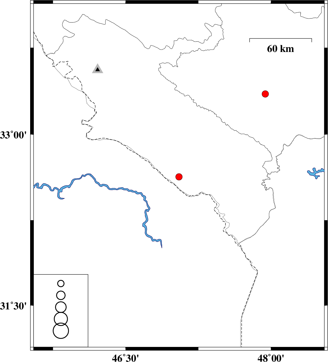| 2014/02/23 | 11:52:36.4 | 15:22:36.4 | 33.35 | 47.94 | 14 | ML3.1 | Lorestan Province, 30 km North-East of Pol-e dokhtar |