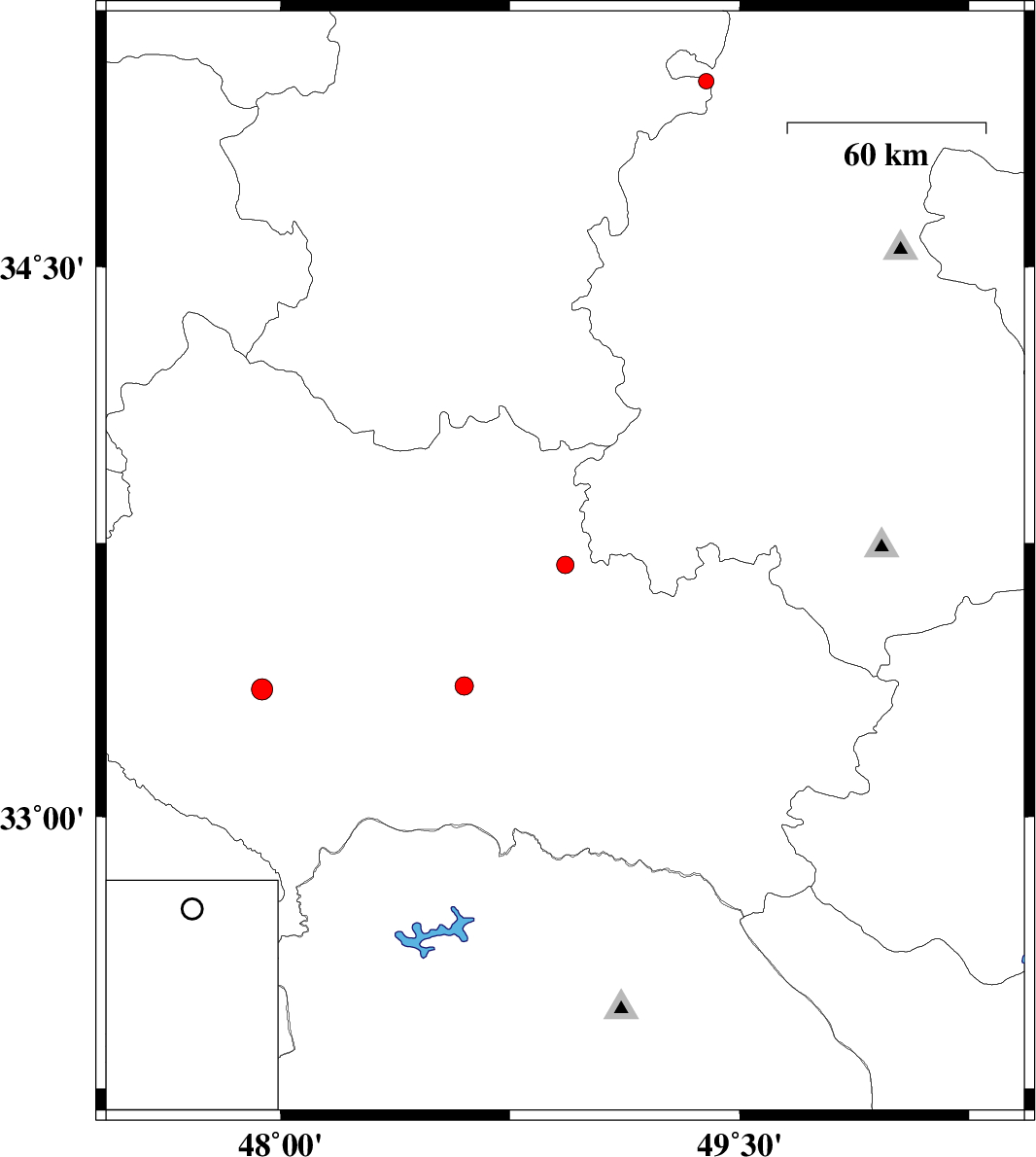 2014/02/23 | 11:52:36.4 | 15:22:36.4 | 33.35 | 47.94 | 14 | ML3.1 | Lorestan Province, 30 km North-East of Pol-e dokhtar |