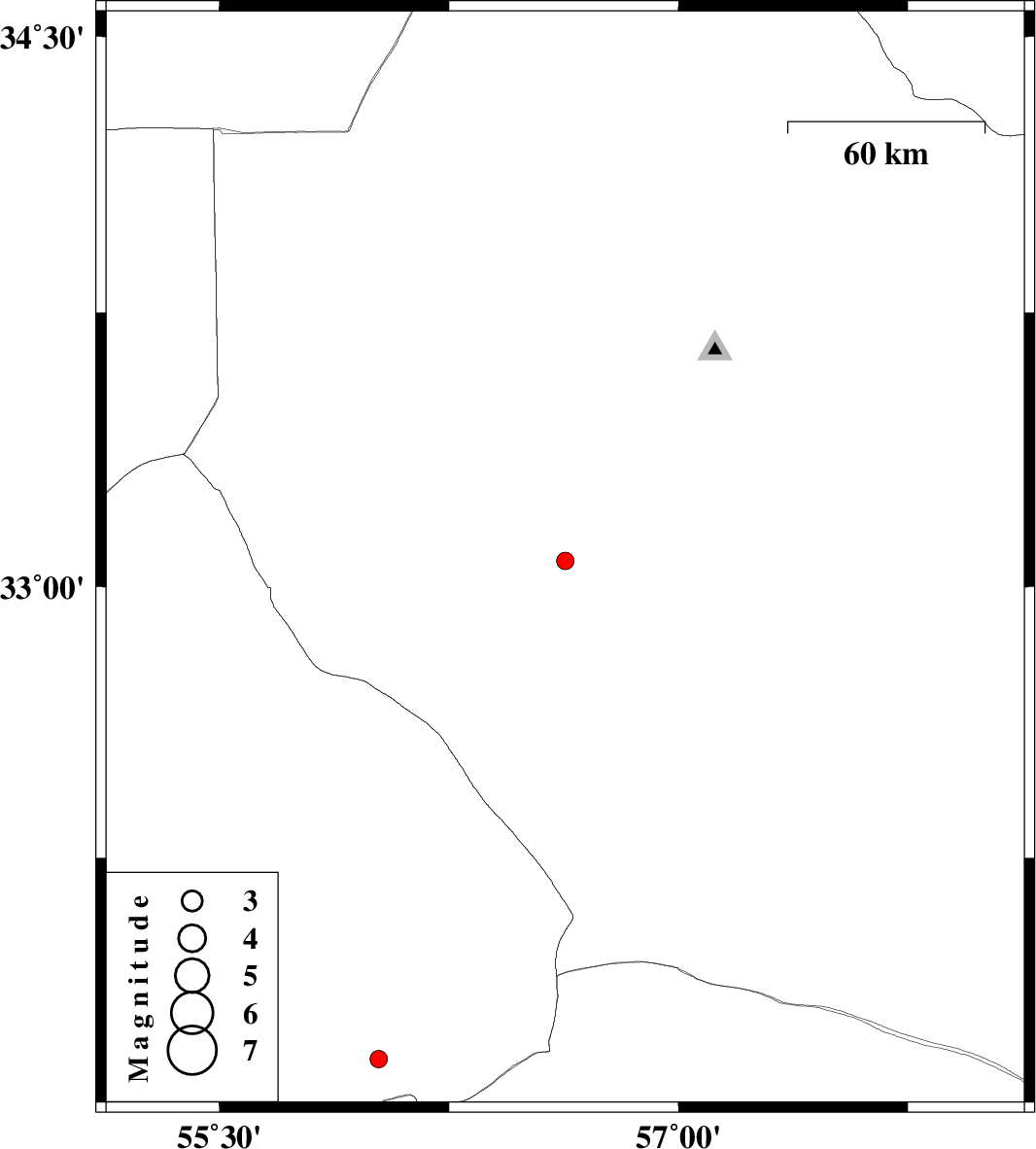 | 2014/03/03 | 07:09:34.4 | 10:39:34.4 | 33.07 | 56.63 | 15 | ML2.5 | Yazd Province, 65 km South-West of Tabas | ||