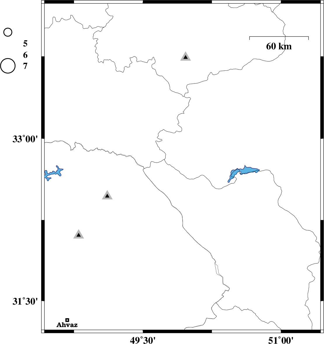 | 2014/03/05 | 02:31:57.3 | 06:01:57.3 | 32.73 | 49.93 | 34 | ML2 | Esfahan Province, 29 km South-West of Fereydunshahr | ||