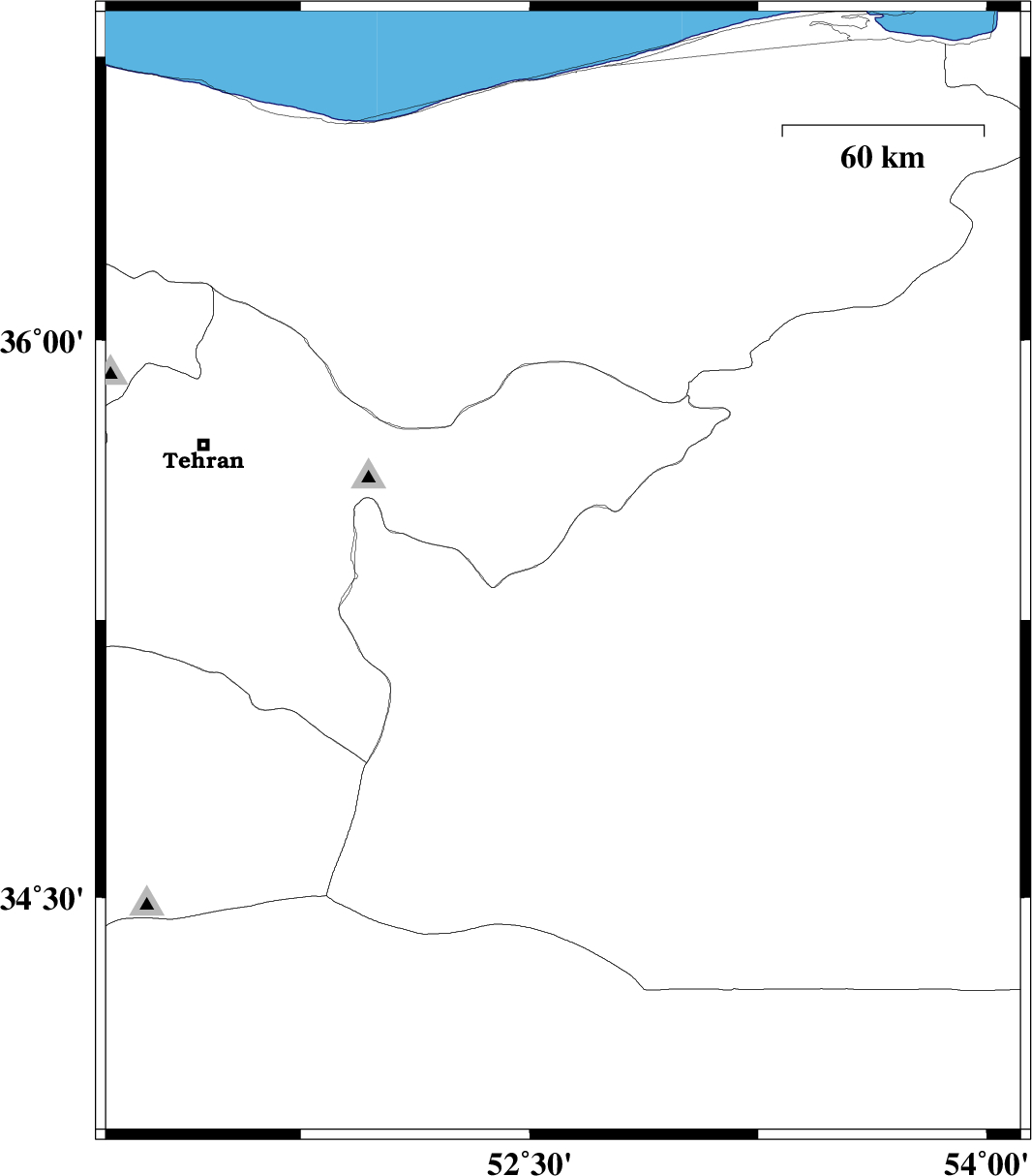 | 2014/03/02 | 00:57:47.4 | 04:27:47.4 | 34.85 | 52.52 | 14 | ML3.9 | Semnan Province, 45 km South-East of Garmsar |
