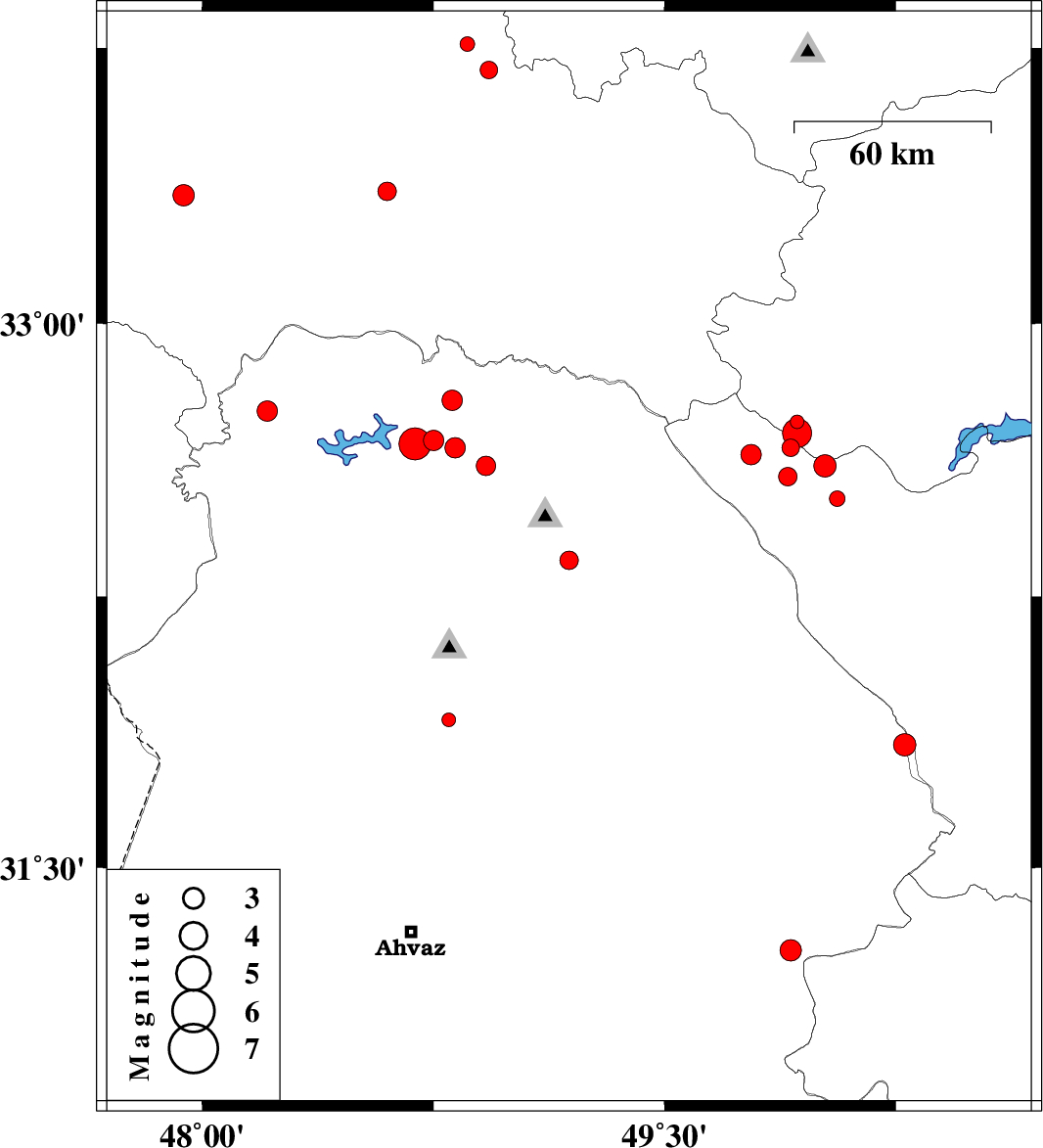 2014/02/07 | 04:43:18.9 | 08:13:18.9 | 32.67 | 48.69 | 14 | ML4.7 | Khoozestan Province, 39 km North-East of Andimeshk | ||