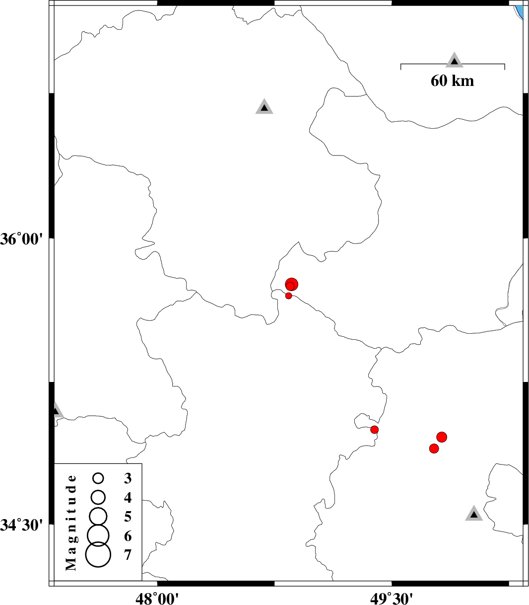 2014/02/04 | 01:42:08.5 | 05:12:08.5 | 35.76 | 48.86 | 39 | ML3.6 | Ghazvin Province, 45 km North-West of Razan |