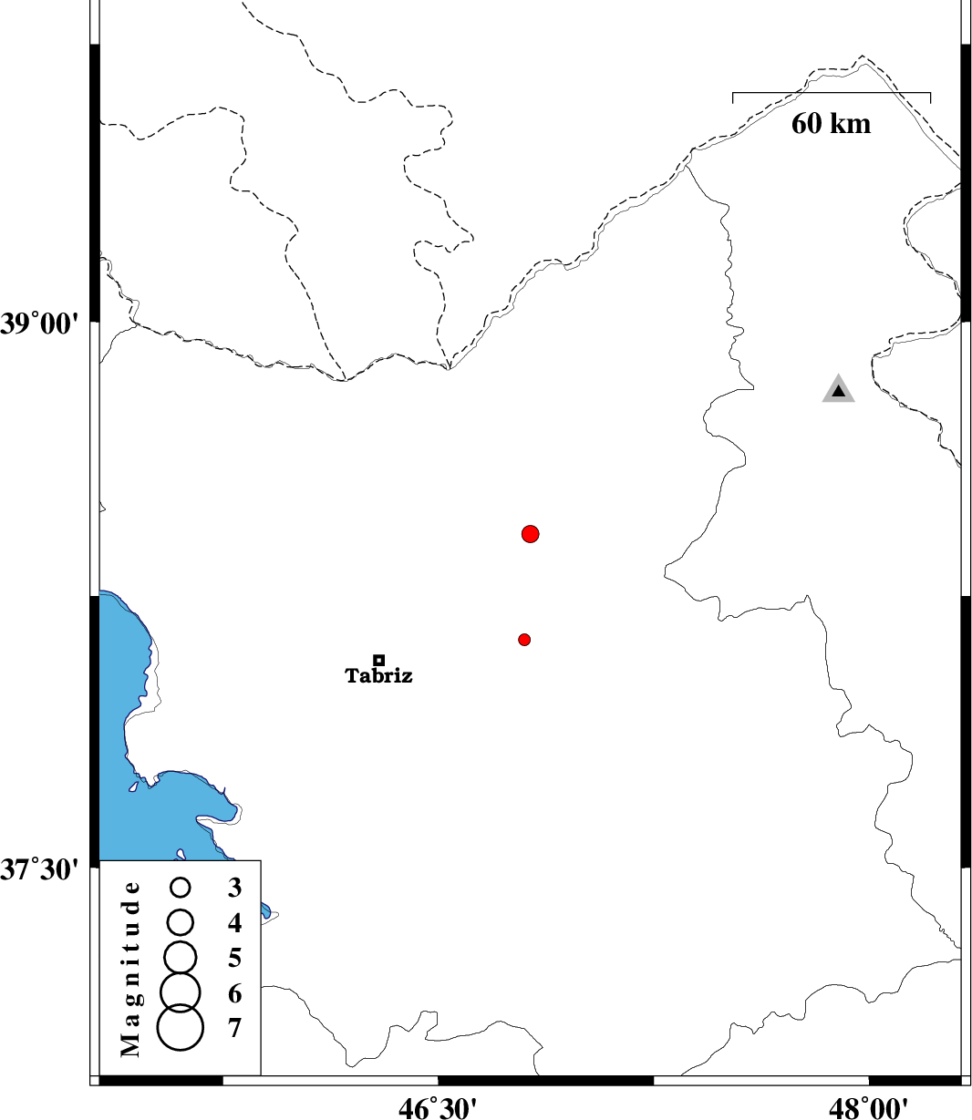 | 2014/03/06 | 21:17:46.7 | 00:47:46.7 | 38.42 | 46.82 | 15 | ML2.7 | Azarbaijan Sharghi Province, 23 km West of Ahar | ||