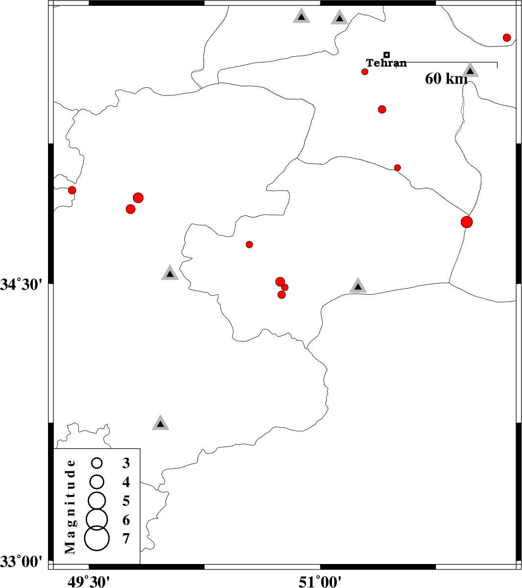 | 2014/03/06 | 01:48:02.4 | 05:18:02.4 | 34.96 | 49.82 | 16 | ML3 | Markazi Province, 35 km North-West of Tafresh | ||