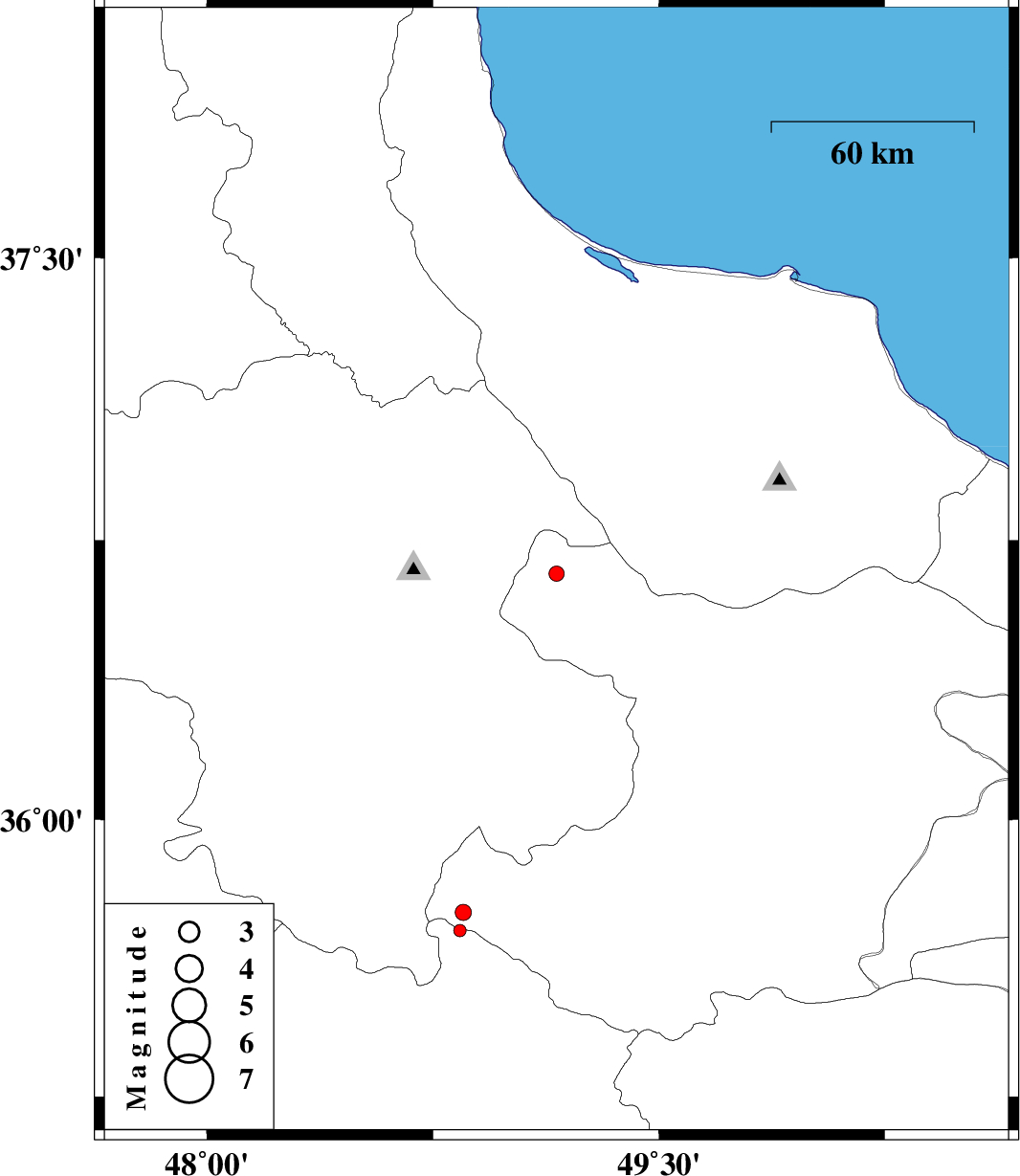 | 2014/03/10 | 16:10:09.4 | 19:40:09.4 | 36.66 | 49.16 | 28 | ML2.3 | Ghazvin Province, 30 km South-West of Rudbar | ||