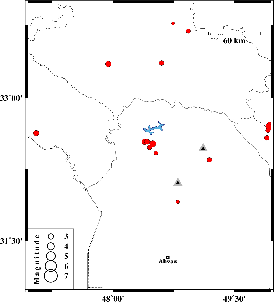 | 2014/03/12 | 03:24:09.2 | 06:54:09.2 | 32.42 | 48.53 | 15 | ML2.3 | Khoozestan Province, 13 km East of Dezful | ||