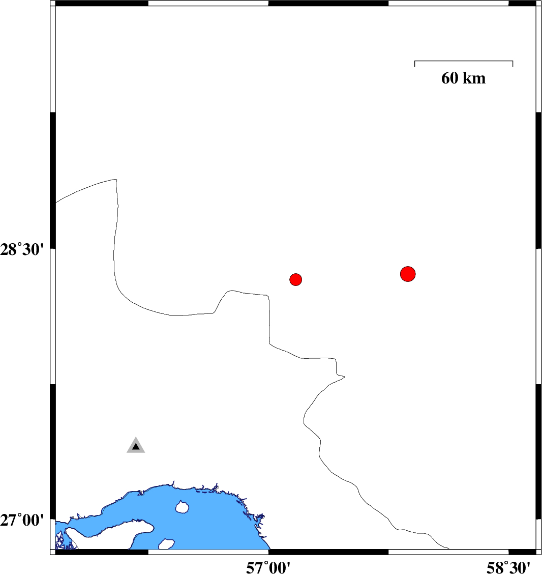 | 2014/03/16 | 14:34:43.9 | 18:04:43.9 | 28.36 | 57.87 | 15 | ML4.2 | Kerman Province, 37 km South-East of Jiroft |