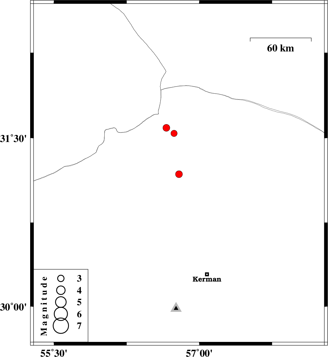 | 2014/03/14 | 08:04:35.4 | 11:34:35.4 | 31.54 | 56.74 | 15 | ML2.9 | Kerman Province, 31 km North of Ravar |