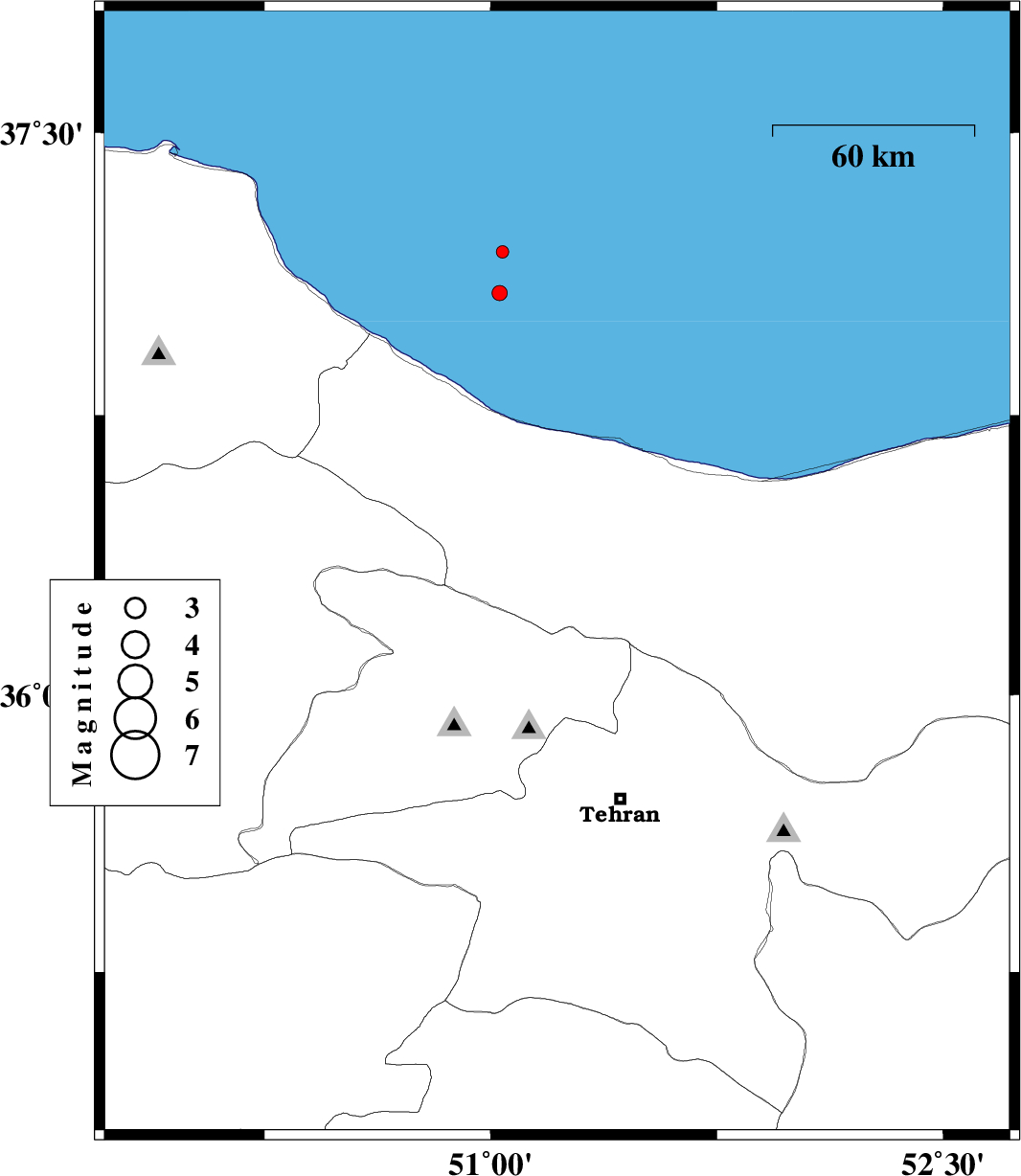 2014/03/20 | 11:13:22.5 | 14:43:22.5 | 36.94 | 50.51 | 31 | ML3.5 | Gilan Province, 13 km West of Ramsar | ||
