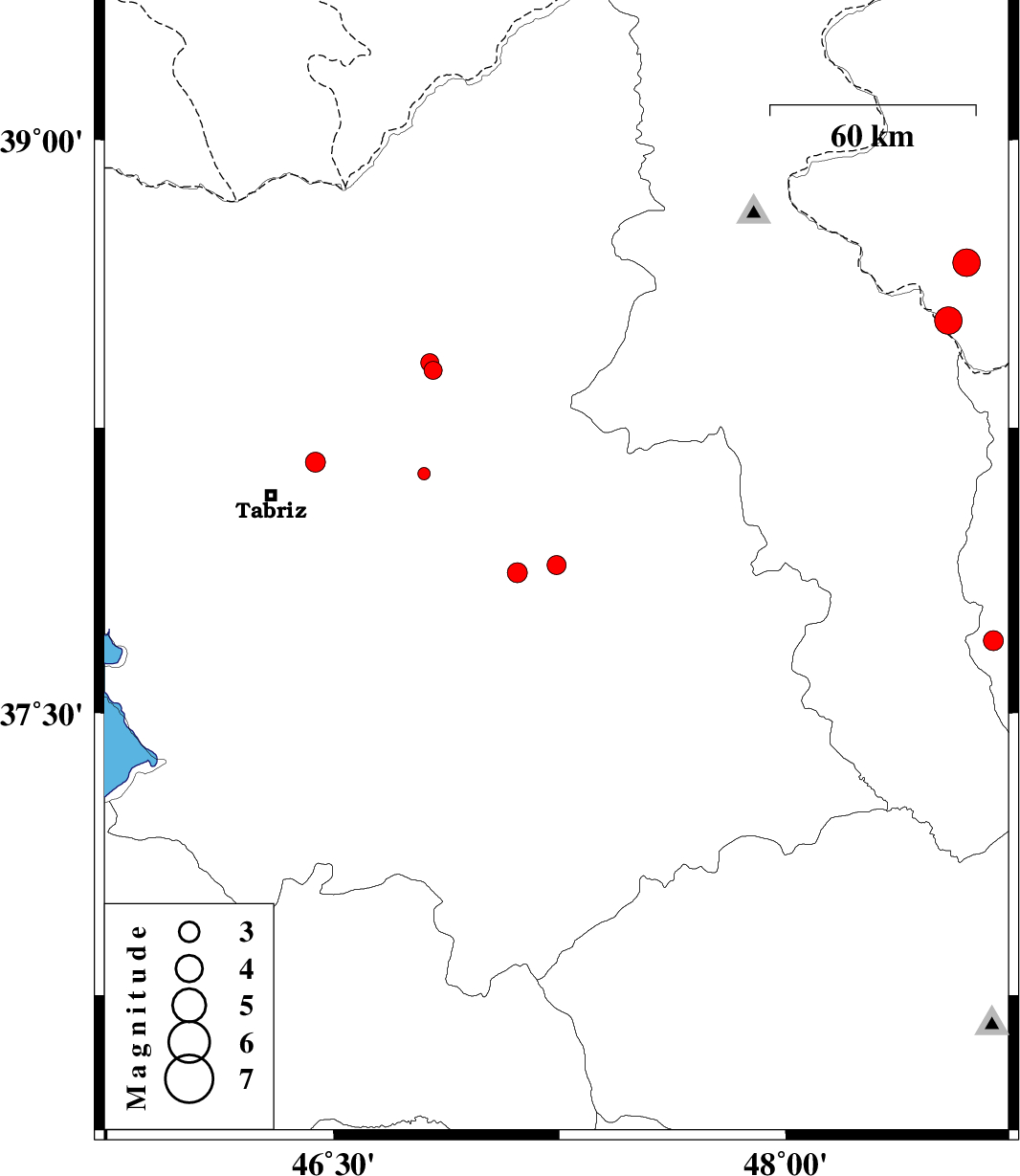 | 2014/03/09 | 06:34:10.8 | 10:04:10.8 | 38.16 | 46.44 | 14 | ML3 | Azarbaijan Sharghi Province, 17 km East of Tabriz | ||