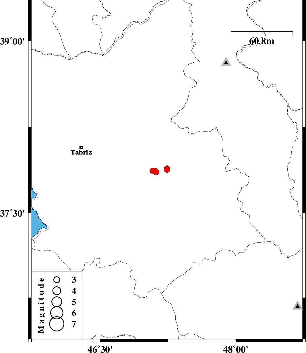 | 2014/03/22 | 11:30:50.4 | 16:00:50.4 | 37.87 | 47.11 | 14 | ML3 | Azarbaijan Sharghi Province, 24 km East of Bostanabad |