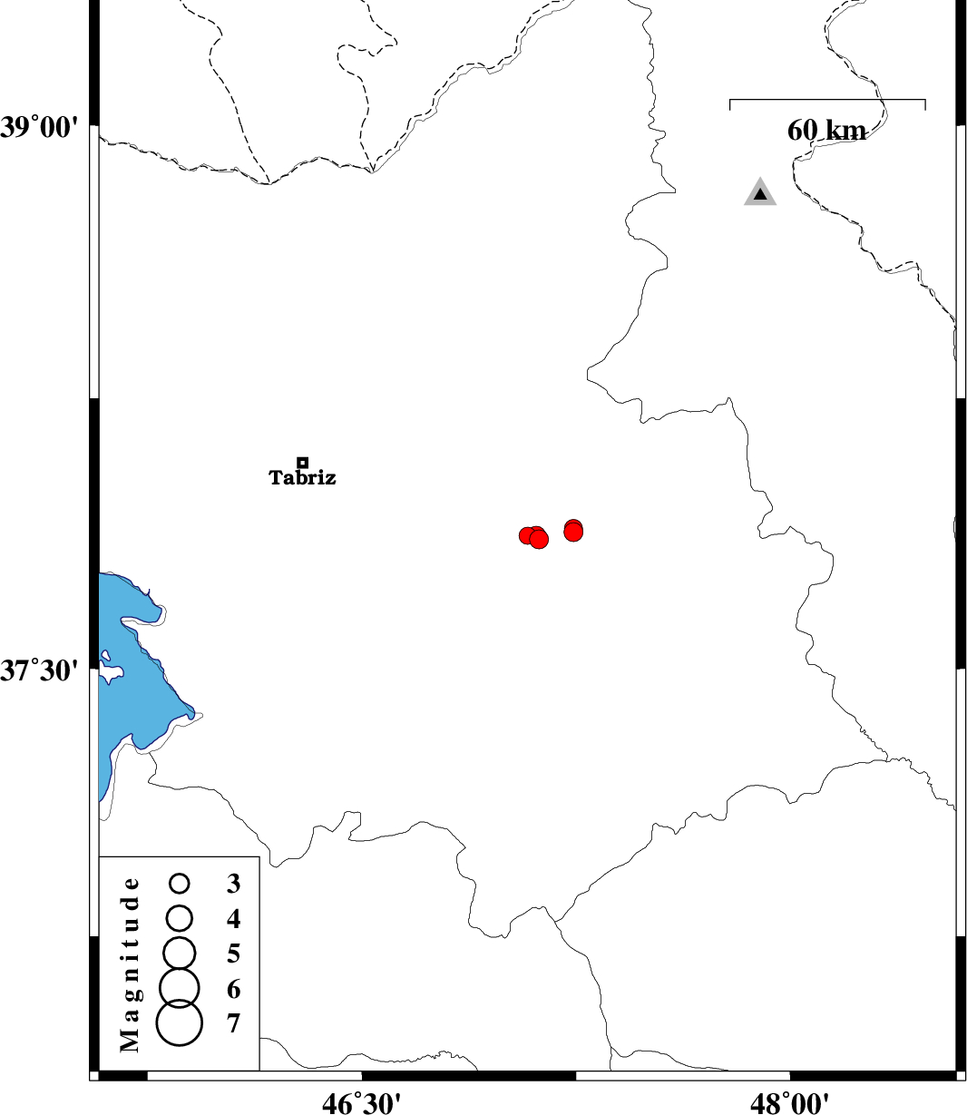 | 2014/03/22 | 11:30:50.4 | 16:00:50.4 | 37.87 | 47.11 | 14 | ML3 | Azarbaijan Sharghi Province, 24 km East of Bostanabad |