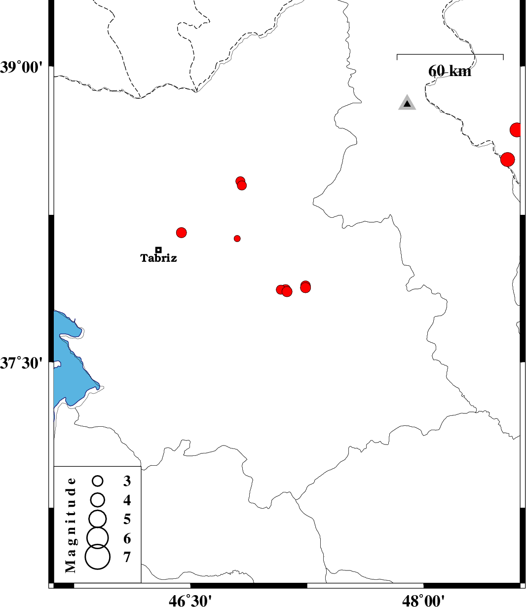 | 2014/03/09 | 06:34:10.8 | 10:04:10.8 | 38.16 | 46.44 | 14 | ML3 | Azarbaijan Sharghi Province, 17 km East of Tabriz | ||