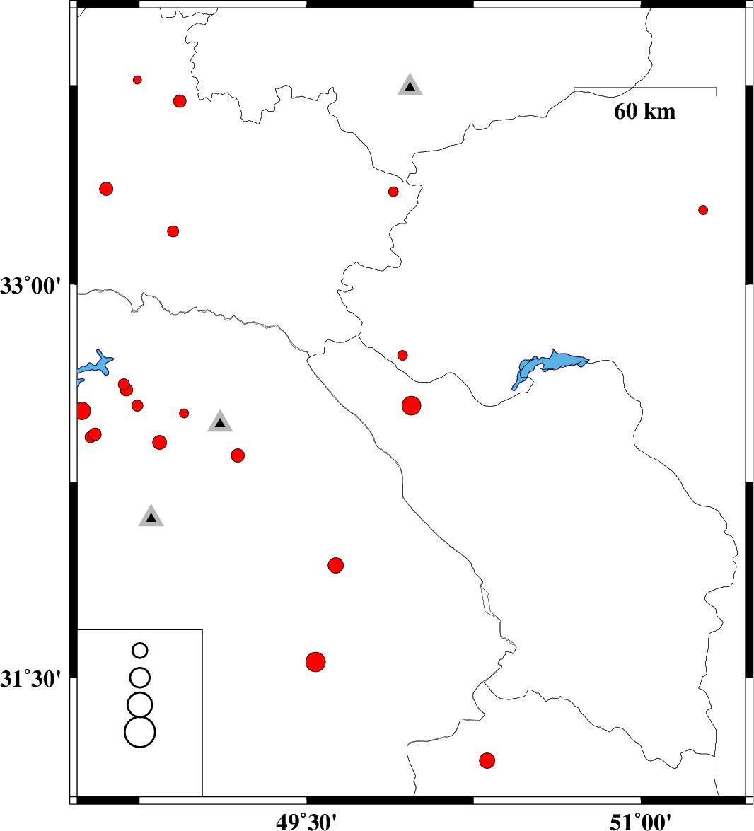 2014/03/05 | 02:31:57.3 | 06:01:57.3 | 32.73 | 49.93 | 34 | ML2 | Esfahan Province, 29 km South-West of Fereydunshahr | ||