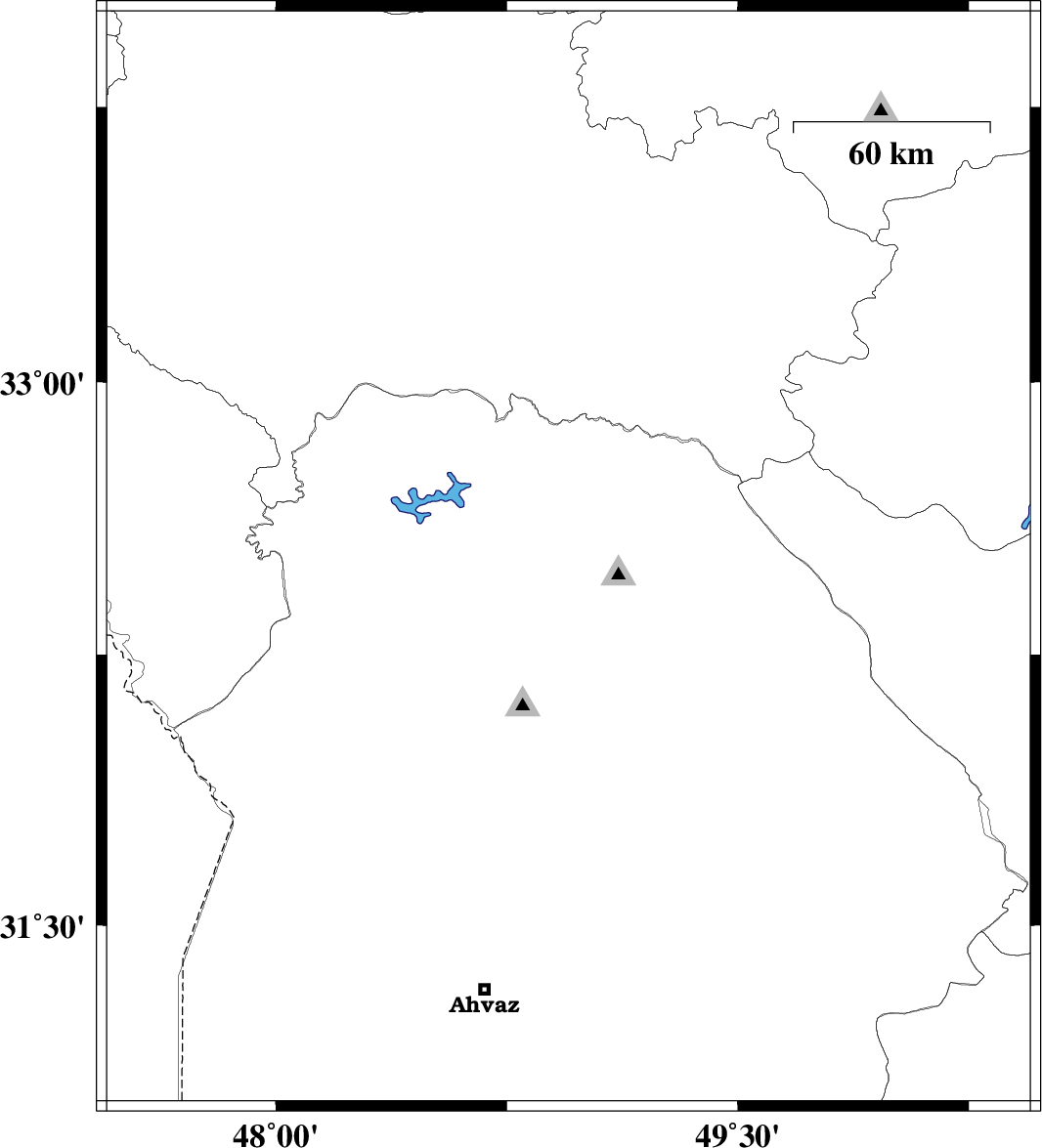 2014/03/12 | 03:24:09.2 | 06:54:09.2 | 32.42 | 48.53 | 15 | ML2.3 | Khoozestan Province, 13 km East of Dezful | ||