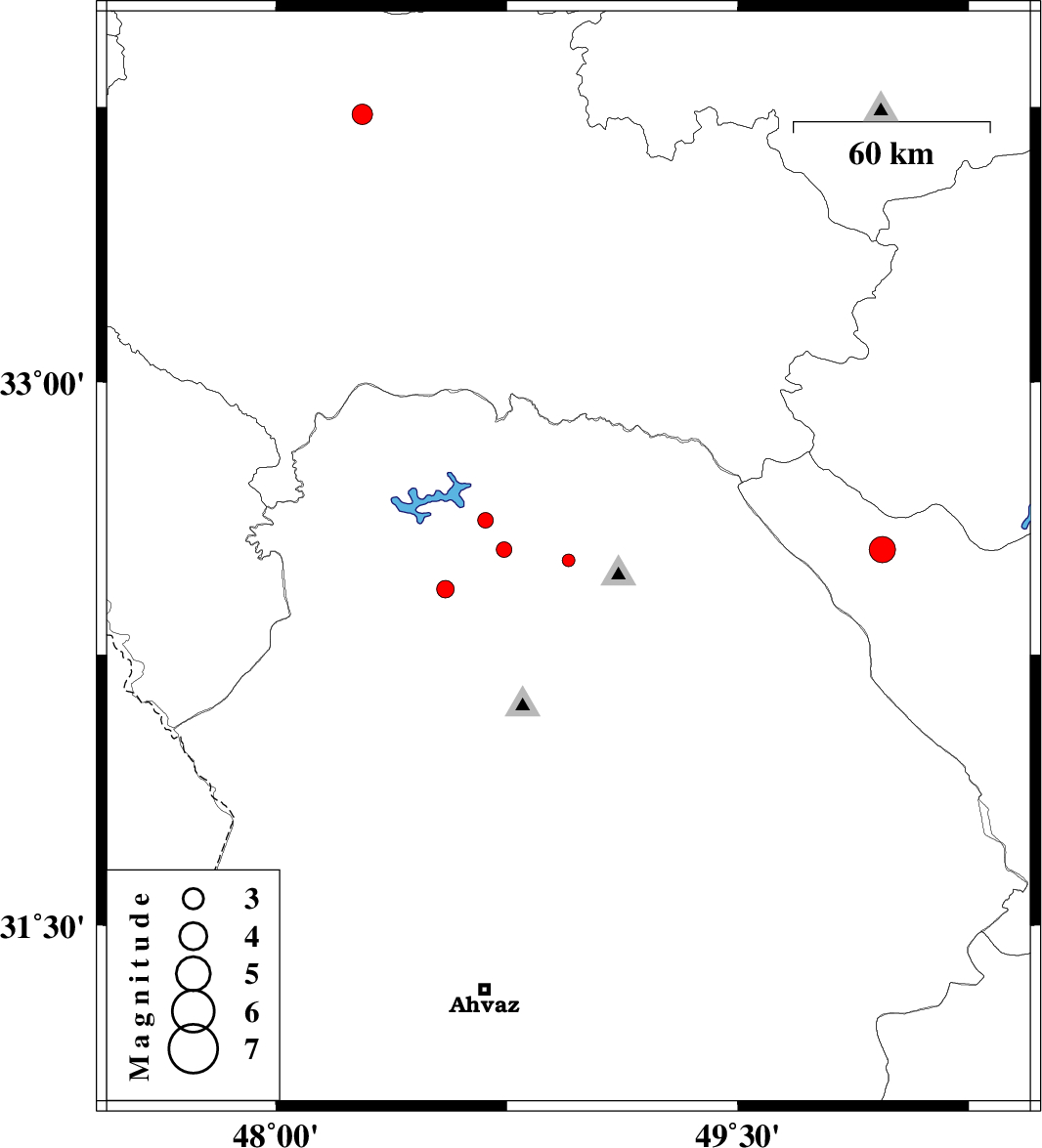 2014/03/27 | 10:10:59.5 | 14:40:59.5 | 32.43 | 48.55 | 14 | ML2.5 | Khoozestan Province, 15 km East of Dezful | ||