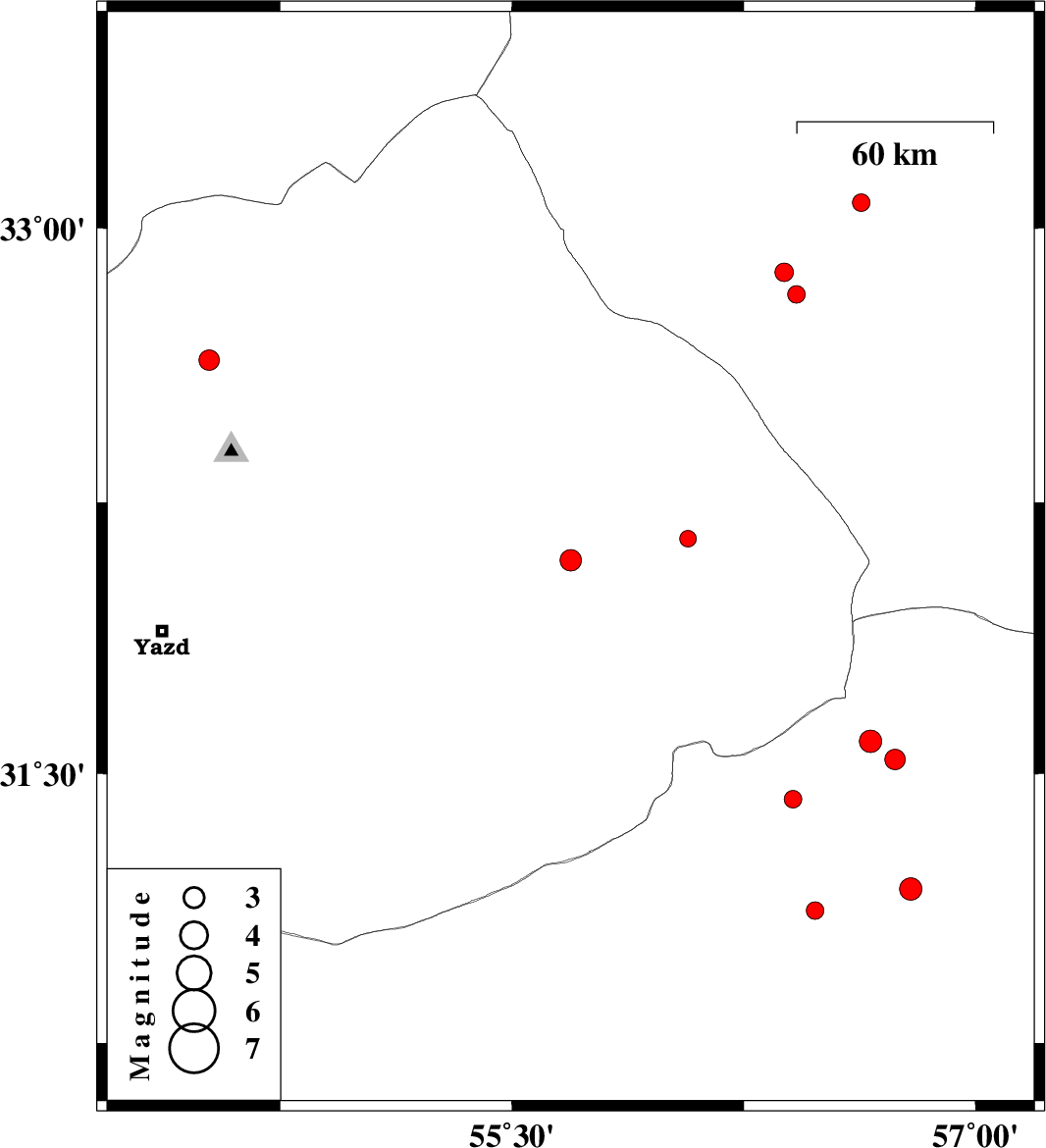 | 2014/03/03 | 07:09:34.4 | 10:39:34.4 | 33.07 | 56.63 | 15 | ML2.5 | Yazd Province, 65 km South-West of Tabas |