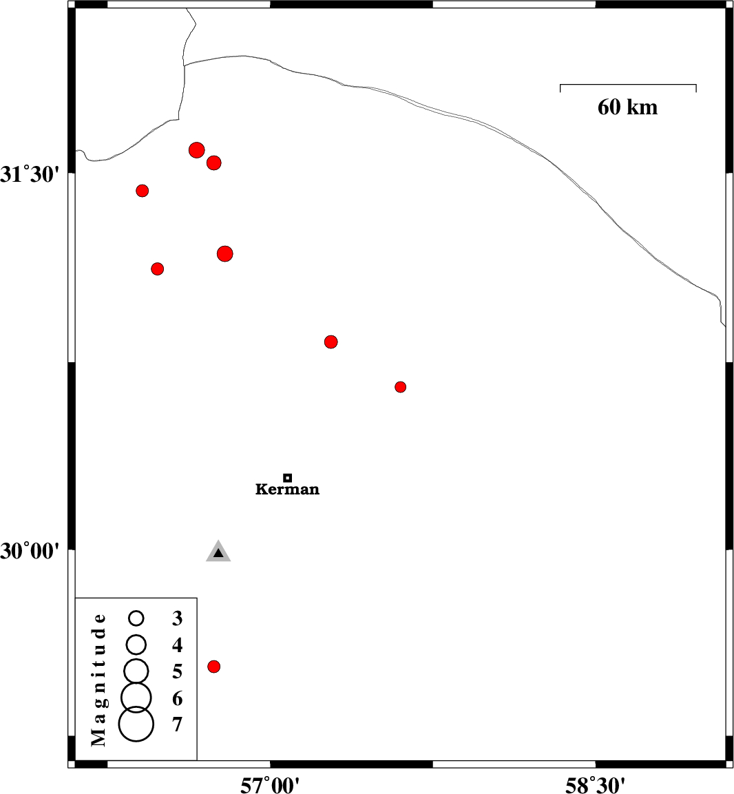 | 2014/03/18 | 01:00:51.5 | 04:30:51.5 | 31.59 | 56.66 | 14 | ML3.2 | Kerman Province, 39 km North-West of Ravar | ||
