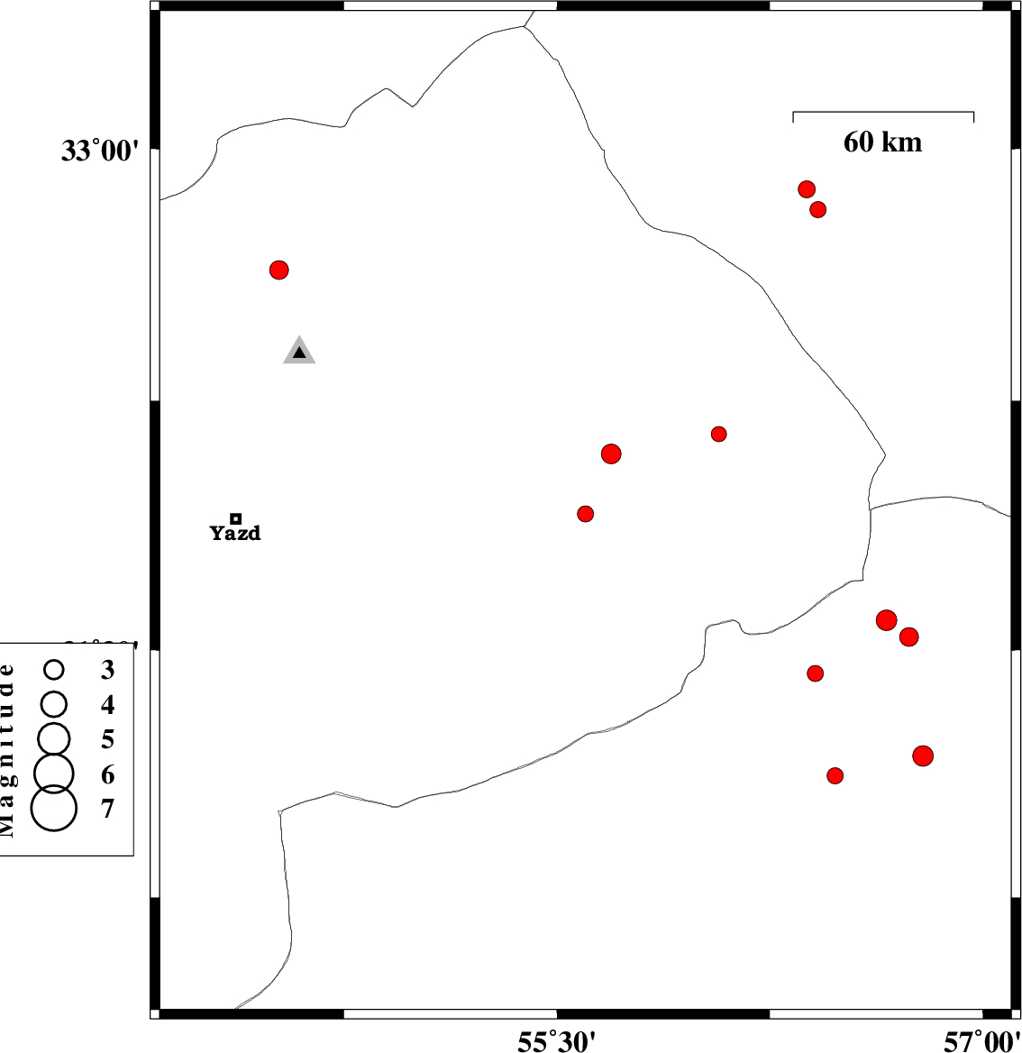 | 2014/03/06 | 20:13:53.6 | 23:43:53.6 | 32.15 | 56.07 | 15 | ML2.4 | Yazd Province, 88 km North-East of Bafq |
