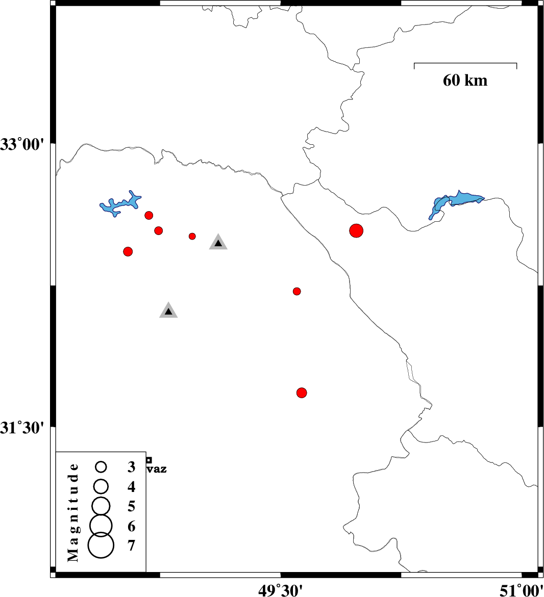 | 2014/03/29 | 09:02:20.7 | 13:32:20.7 | 32.54 | 49.97 | 15 | ML3.8 | Chaharmahal Bakhtiari Province, 16 km West of Chelgard | ||