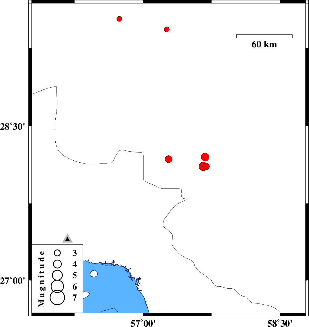 | 2014/04/01 | 06:40:19.4 | 11:10:19.4 | 28.2 | 57.68 | 14 | ML4 | Kerman Province, 28 km North of Kahnuj | ||