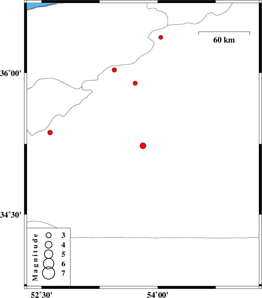 2014/03/07 | 01:20:08.7 | 04:50:08.7 | 35.89 | 53.71 | 14 | ML2.5 | Semnan Province, 45 km North-East of Semnan | ||