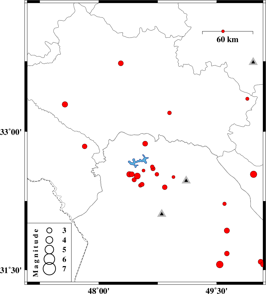 | 2014/03/14 | 01:56:52.8 | 05:26:52.8 | 33.35 | 49.89 | 7 | ML2 | Lorestan Province, 19 km East of Aligudarz | ||