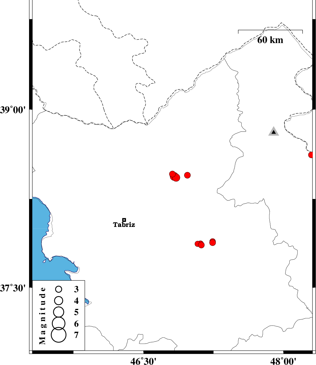| 2014/03/22 | 11:30:50.4 | 16:00:50.4 | 37.87 | 47.11 | 14 | ML3 | Azarbaijan Sharghi Province, 24 km East of Bostanabad |