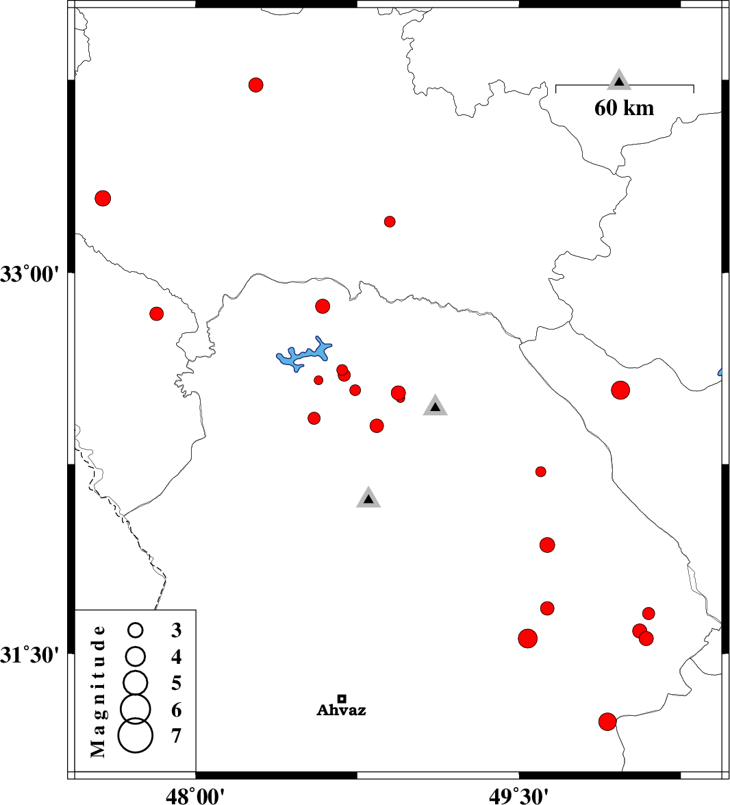 2014/03/29 | 21:52:09.1 | 02:22:09.1 | 32.62 | 48.68 | 15 | ML2.2 | Khoozestan Province, 36 km North-East of Andimeshk | ||