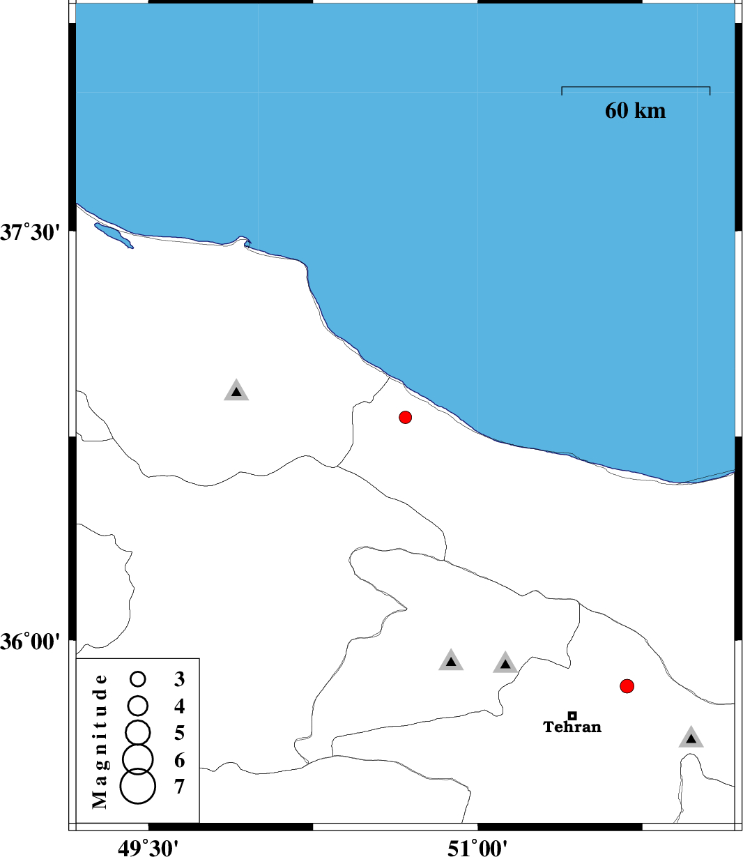 | 2014/04/13 | 06:08:46.5 | 10:38:46.5 | 35.83 | 51.68 | 15 | ML2.8 | Tehran Province, 22 km East of Tajrish |
