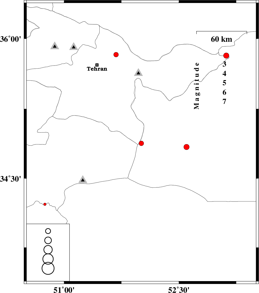 | 2014/04/08 | 17:38:04.0 | 22:08:04.0 | 35.82 | 53.12 | 14 | ML3.3 | Tehran Province, 33 km South of Pol-E-Sefid |