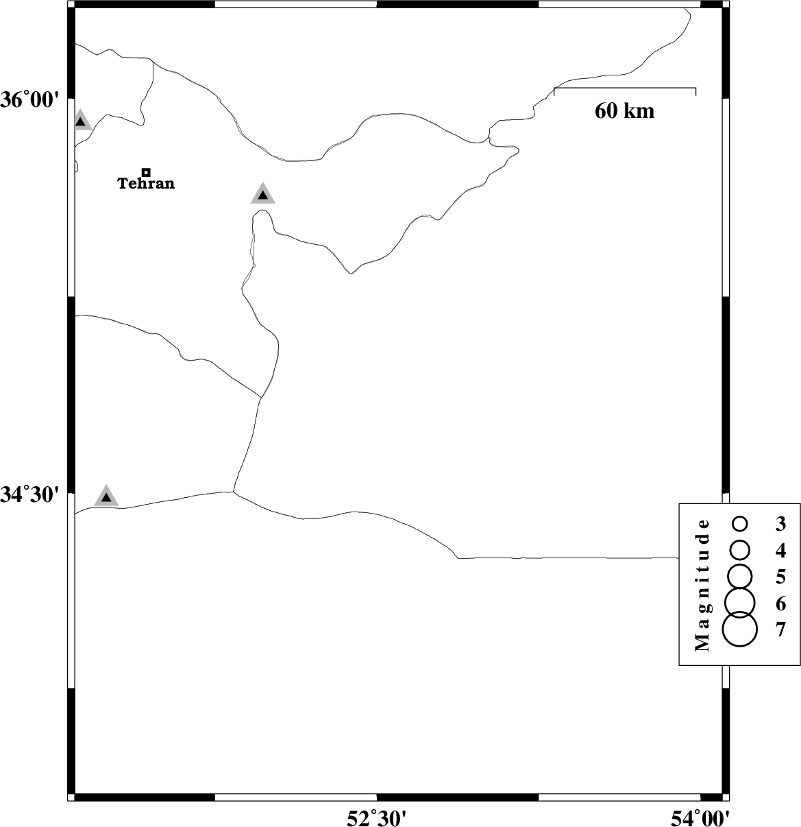 | 2014/04/08 | 17:38:04.0 | 22:08:04.0 | 35.82 | 53.12 | 14 | ML3.3 | Tehran Province, 33 km South of Pol-E-Sefid |