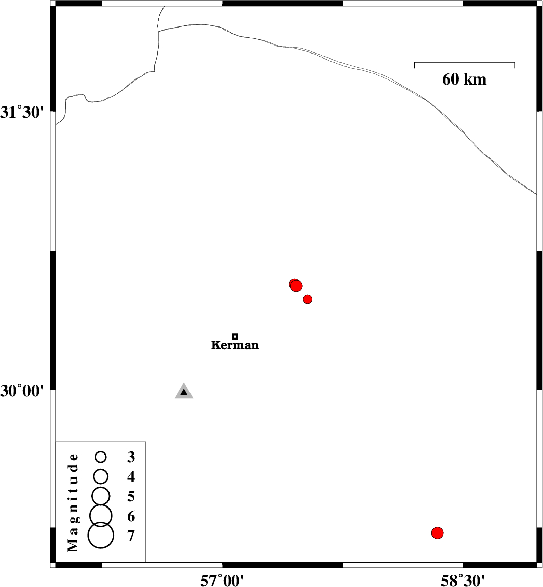 2014/04/23 11:15:41.9 15:45:41.9 30.5757.4514 ML2.8 Kerman Province, 47 km North-East of Kerman
