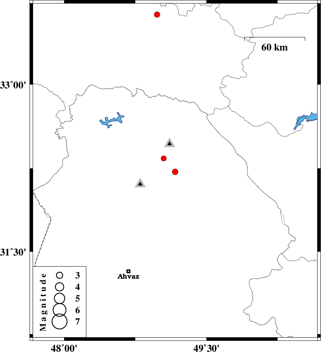 | 2014/04/27 | 00:55:41.3 | 05:25:41.3 | 32.22 | 49.17 | 14 | ML2.8 | Khoozestan Province, 20 km South of Lali | ||